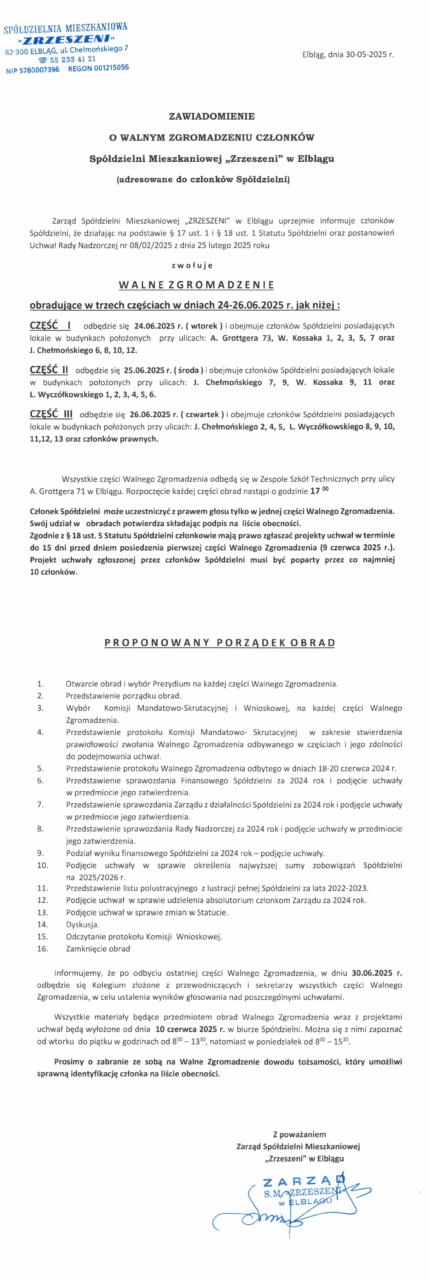 Aktualności Zawiadomienie o Walnym Zgromadzeniu Członków Spółdzielni Mieszkaniowej „Zrzeszeni” na rok 2025 2 czerwca 2025 by Grzegorz Strug